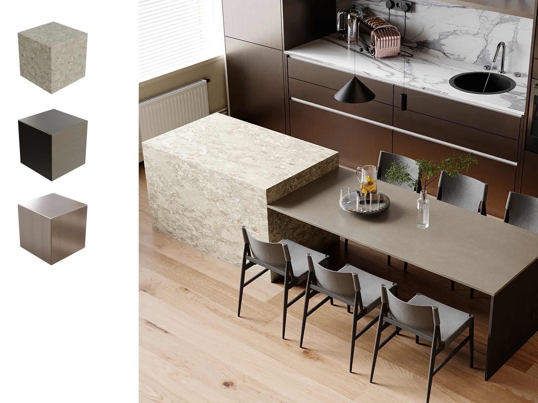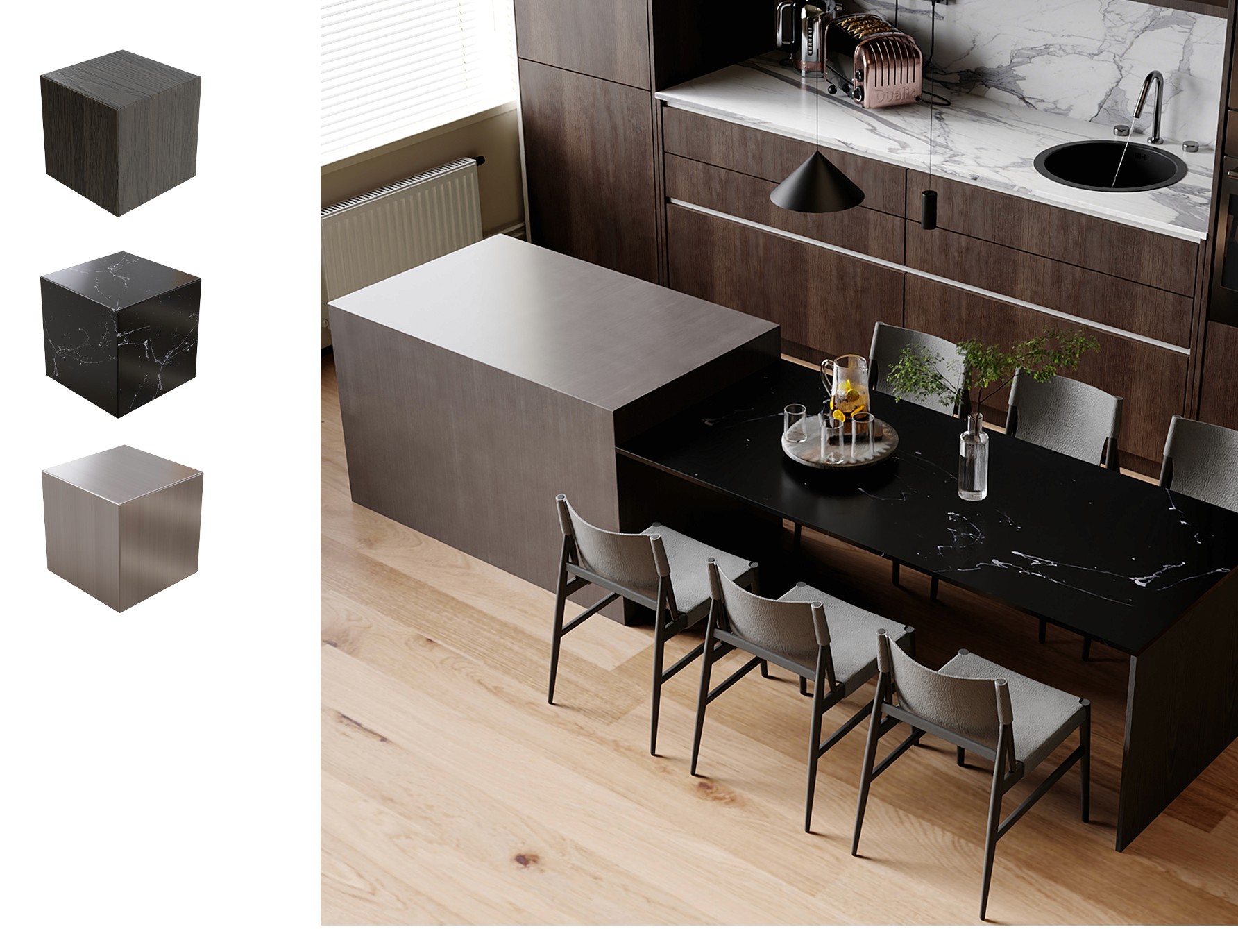 Built for use across leading 3D software (3DS Max, Cinema 4D, Blender, and Substance) and render engines (Corona, V-Ray, Enscape, and Lumion), these textures integrate easily into existing workflows and deliver consistent results. Each texture is calibrated across material systems — whether specular/glossiness or metal/roughness — ensuring it behaves reliably across furniture surfaces.